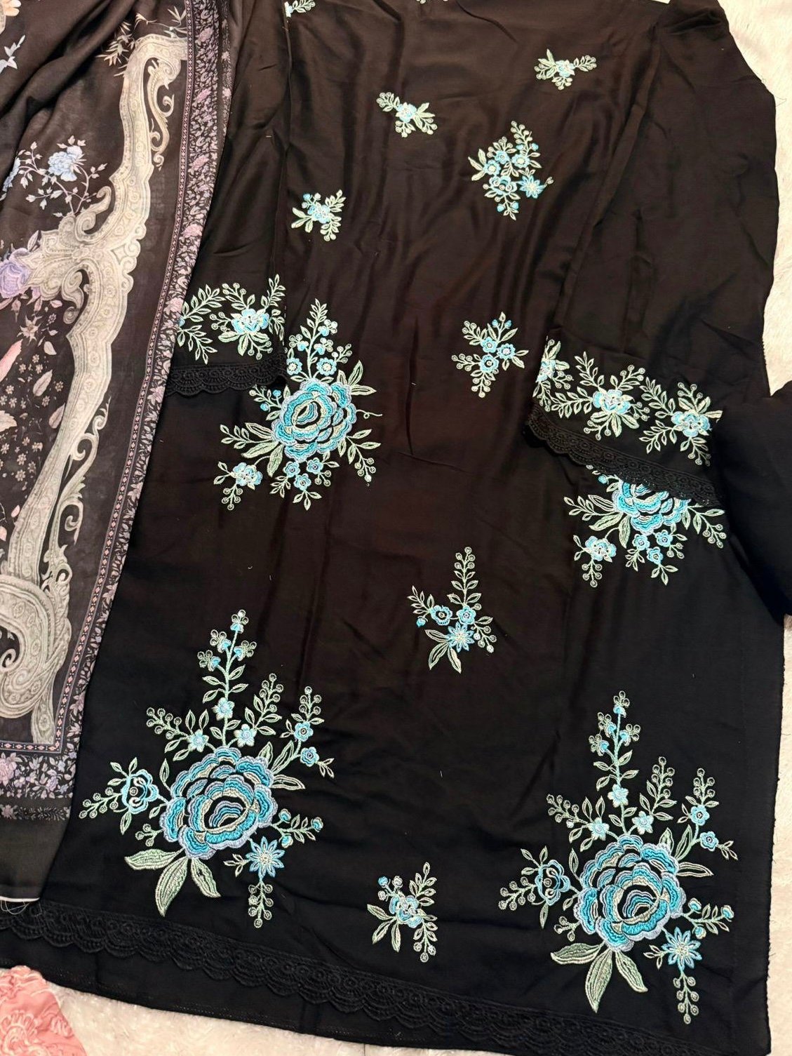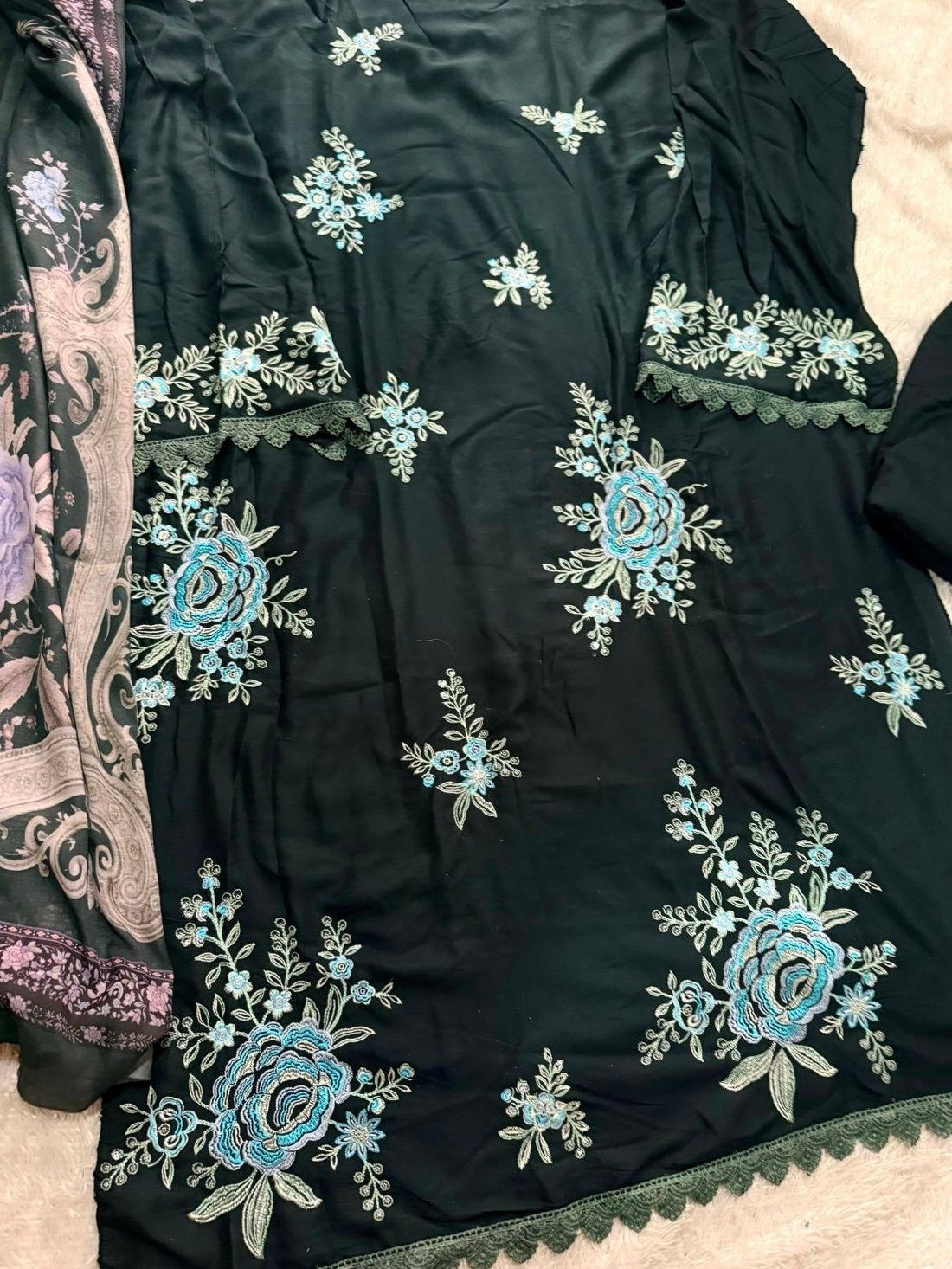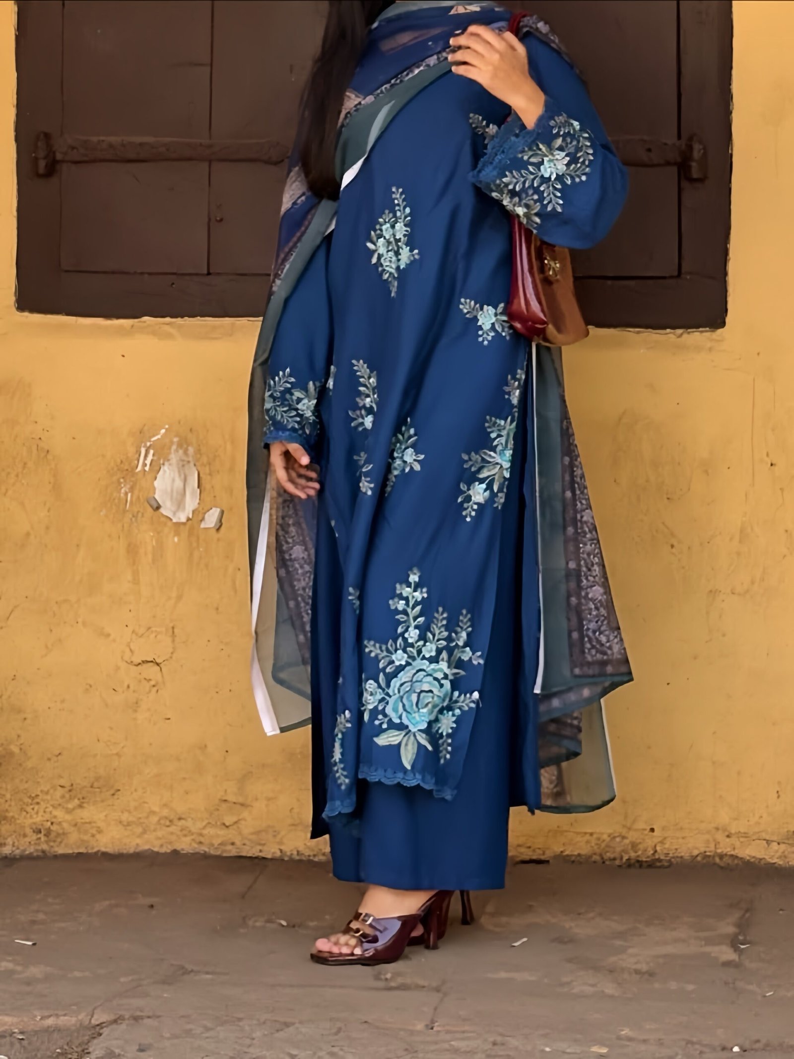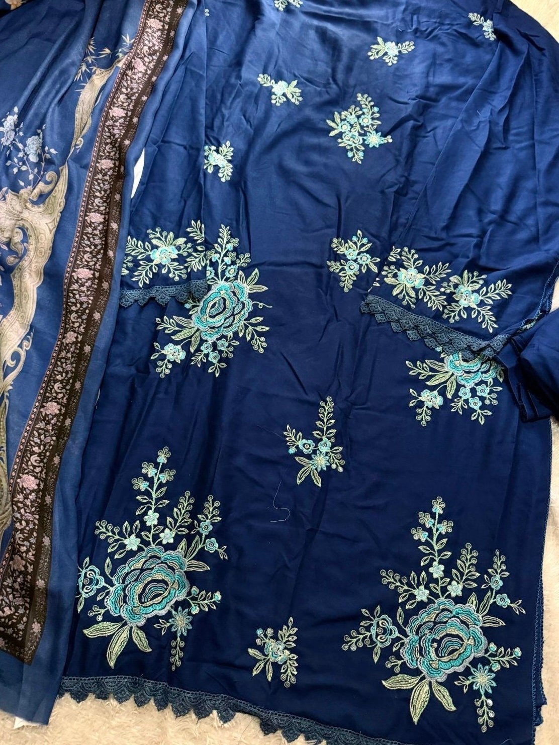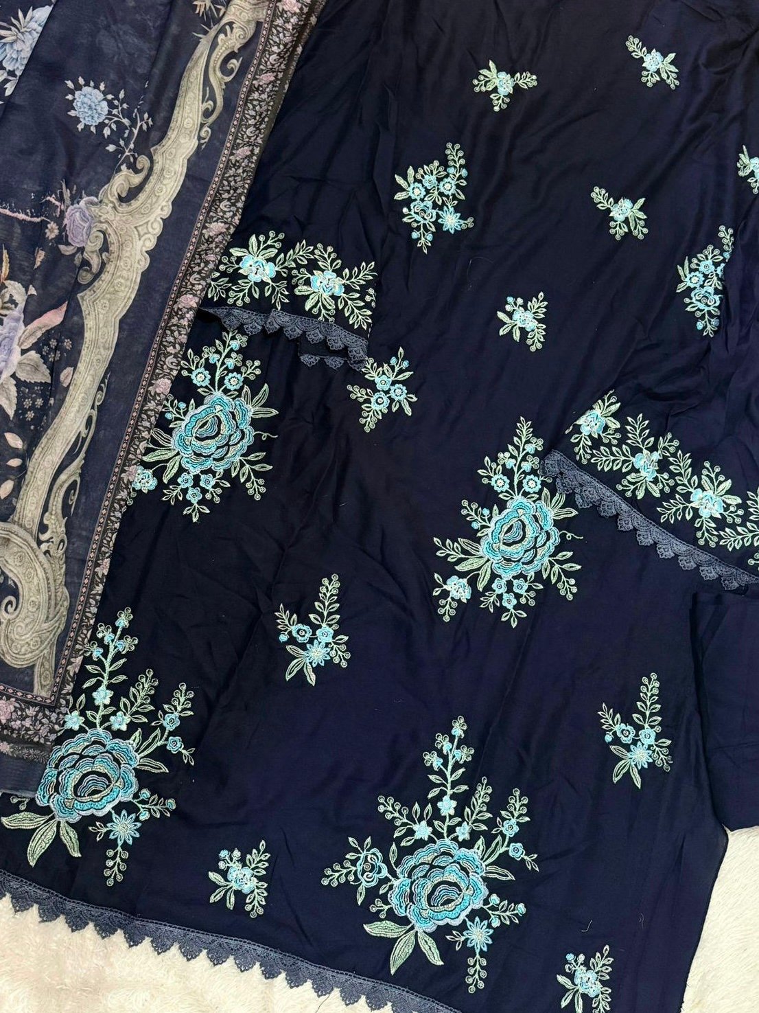 The blue comes with both shiffon and cotton duppatta